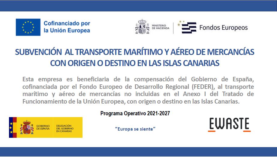 Proyecto de ampliación y modernización de línea de tratamiento de grandes aparatos eléctricos y electrónicos subvencionado por la Consejería de Turismo, Industria y Comercio del Gobierno de Canarias, según Resolución nº 607/2021, de la Dirección General de Industria, de 12 de noviembre, por la que se resuelve definitivamente la concesión de subvenciones para la modernización y diversificación del sector industrial para el año 2021, convocadas por resolución nº 243/2021, de 12 de mayo. Con un importe de 113.692.64 Euros.